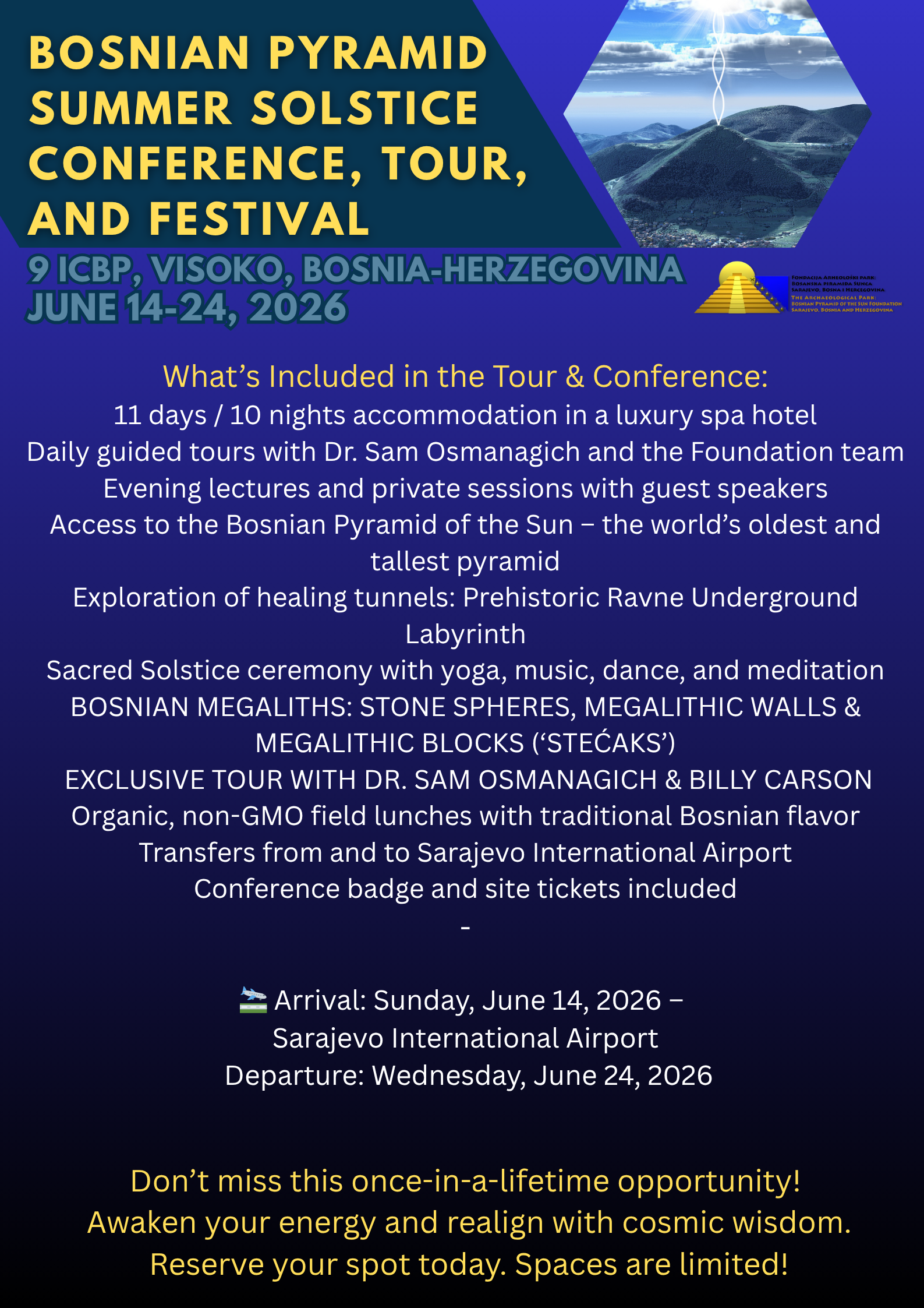 BOSNIAN PYRAMID SUMMER SOLSTICE TOUR, CONFERENCE & FESTIVAL